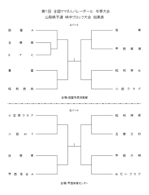 ▼甲府ブロック大会 組合せ表 ※ ←クリックにて別ウィンドウ表示します。