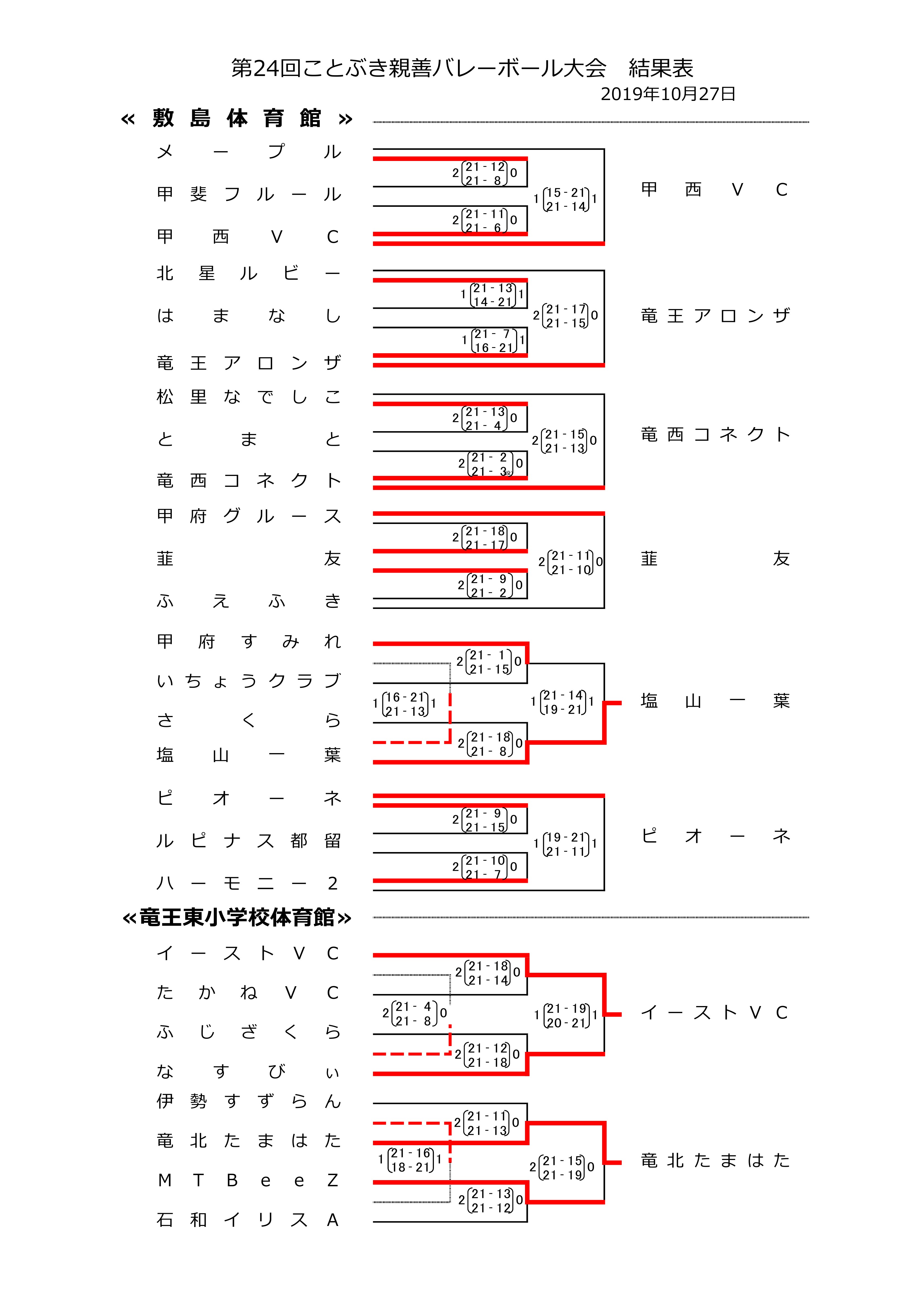 第24回ことぶき親善バレーボール大会【結果表】2019年10月27日