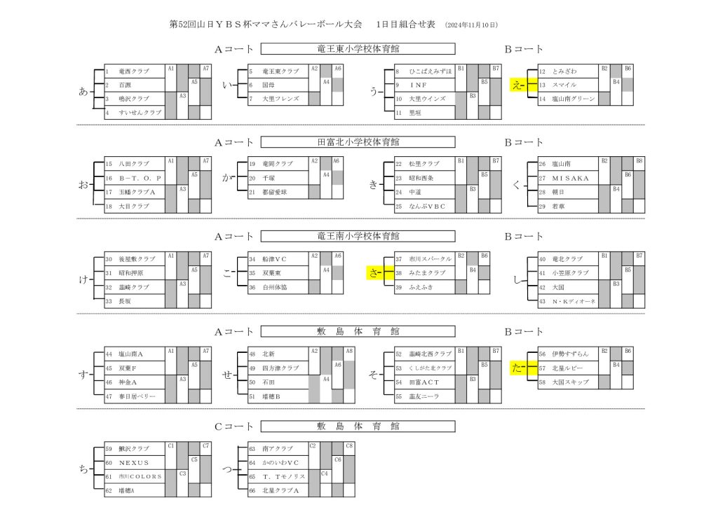 第52回山日YBS杯ママさんバレーボール大会【抽選結果】