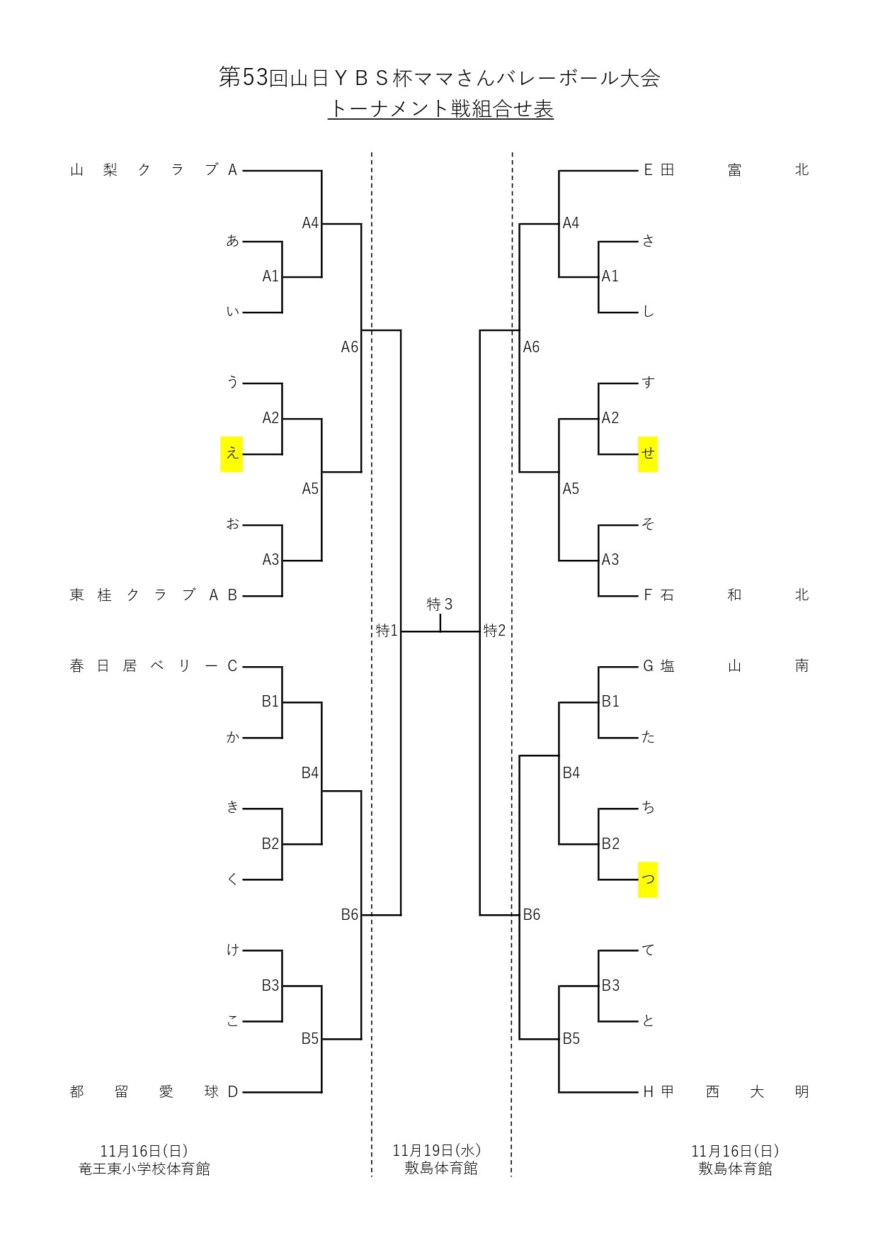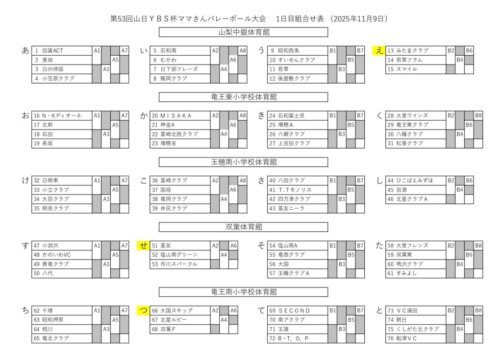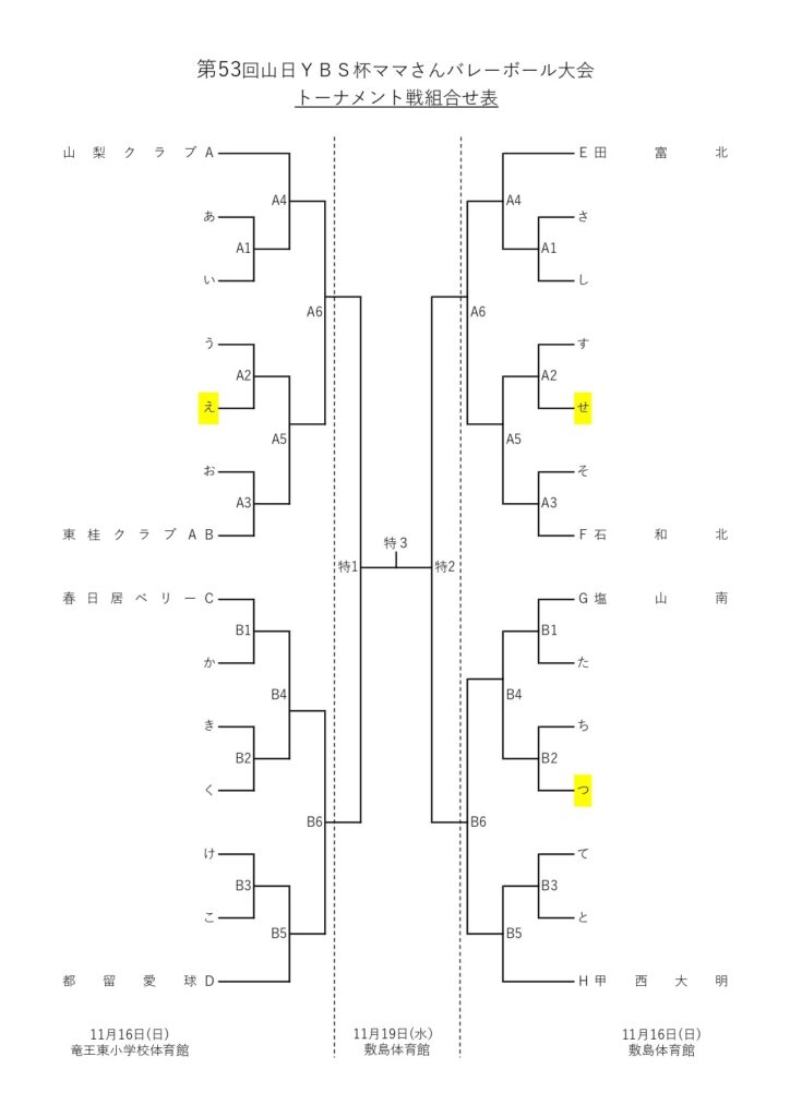 第53回山日YBS杯ママさんバレーボール大会【抽選結果】
