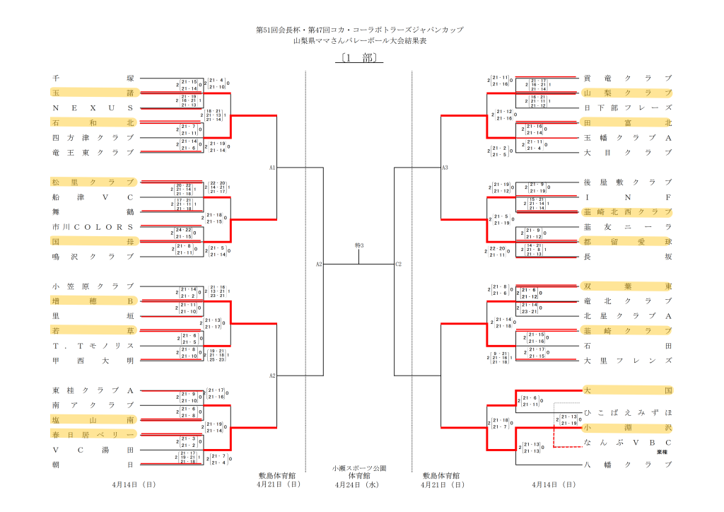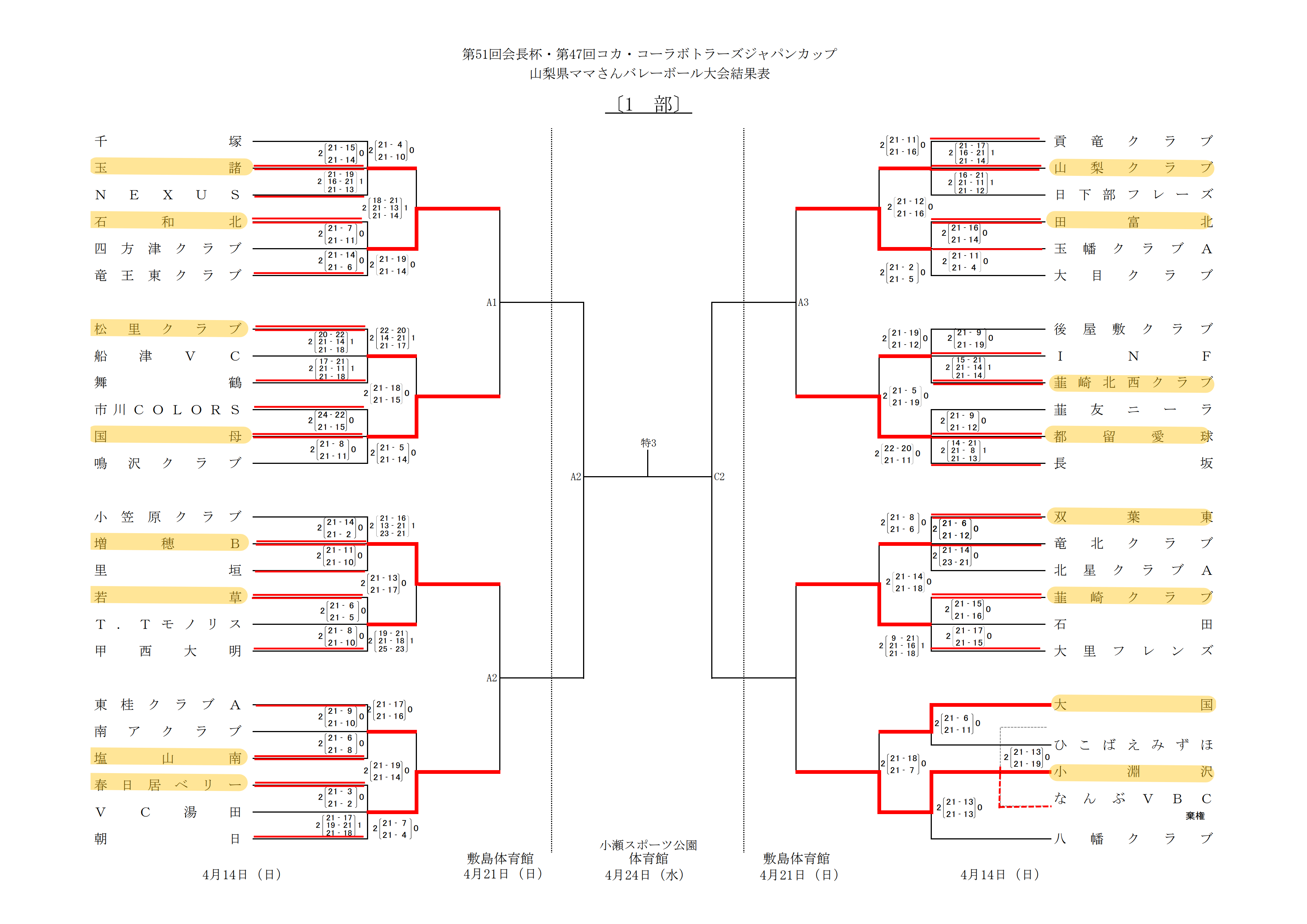 第51回会長杯・第47回コカ・コーラボトラーズジャパンカップ 2日目 結果表