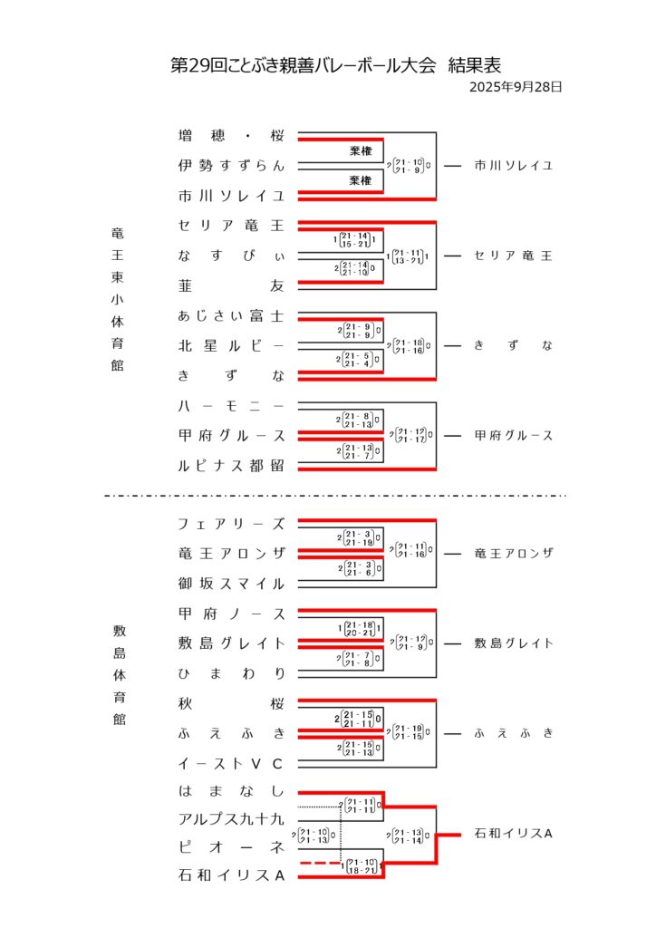 第29回ことぶき親善バレーボール大会 結果