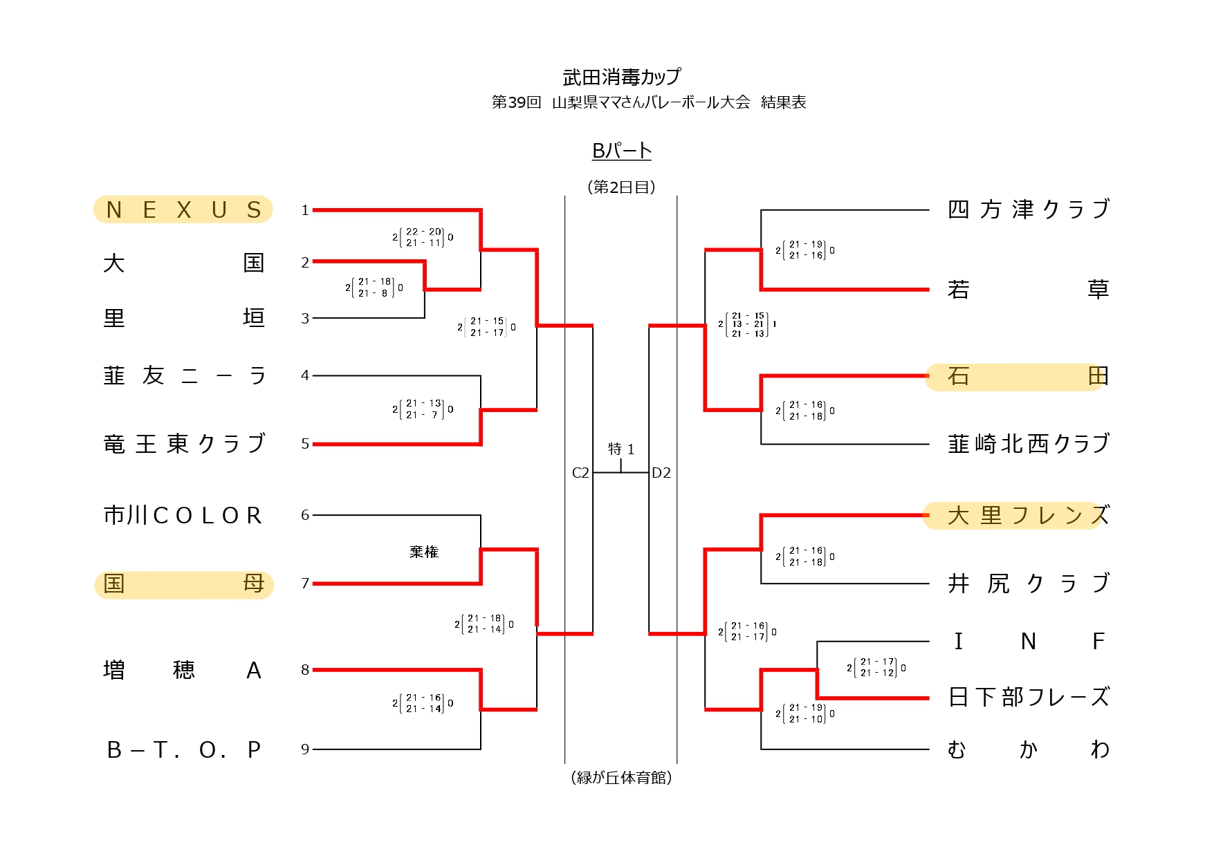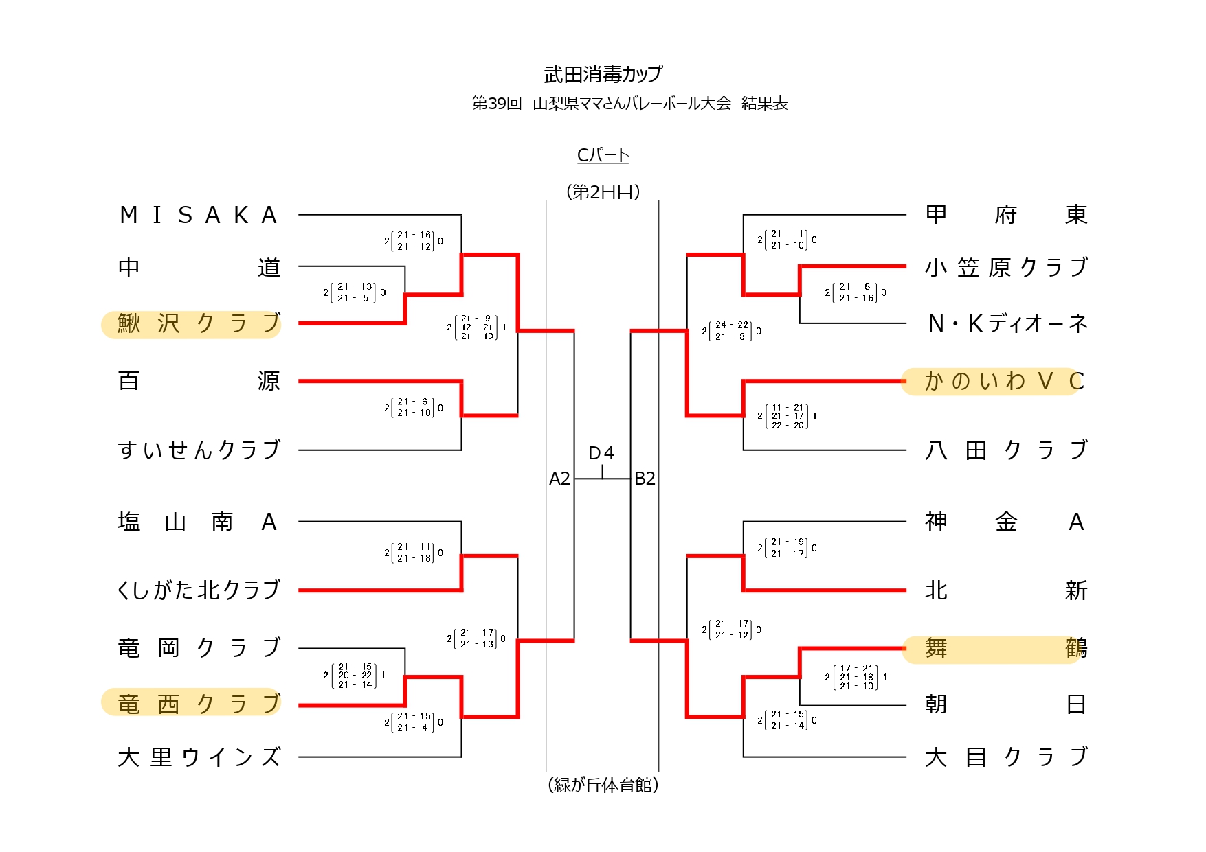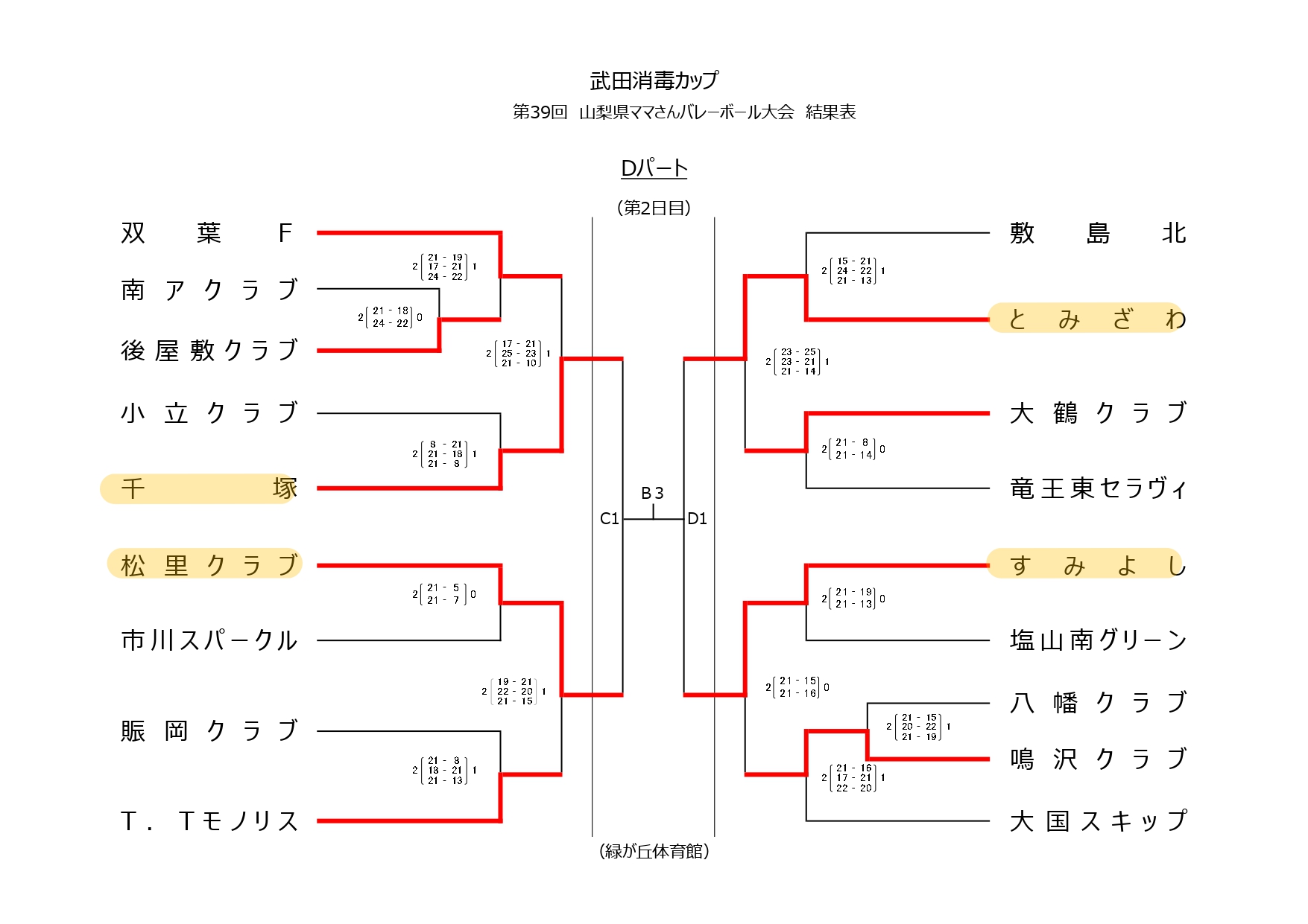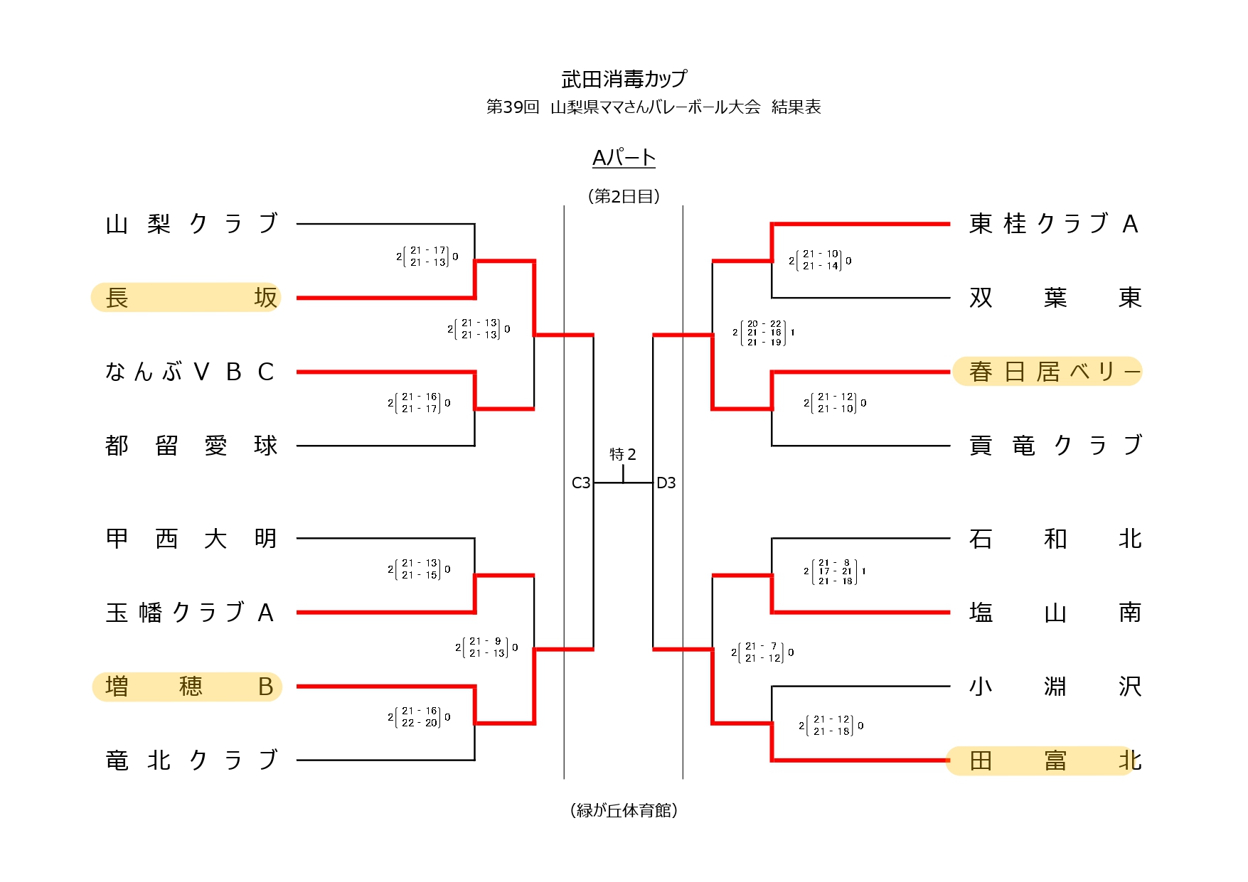 武田消毒カップ 第39回山梨県ママさんバレーボール大会【1日目結果】