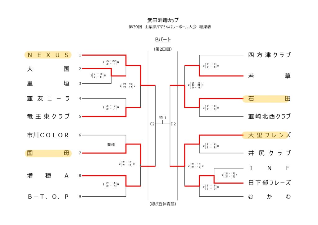 武田消毒カップ 第39回山梨県ママさんバレーボール大会【組合せ】